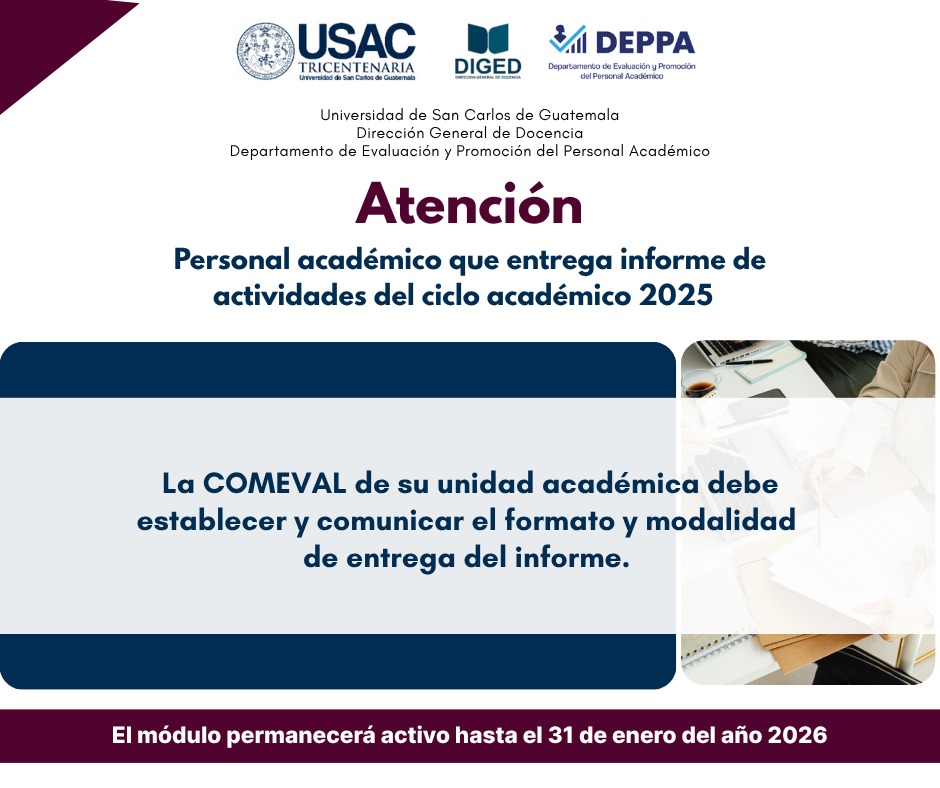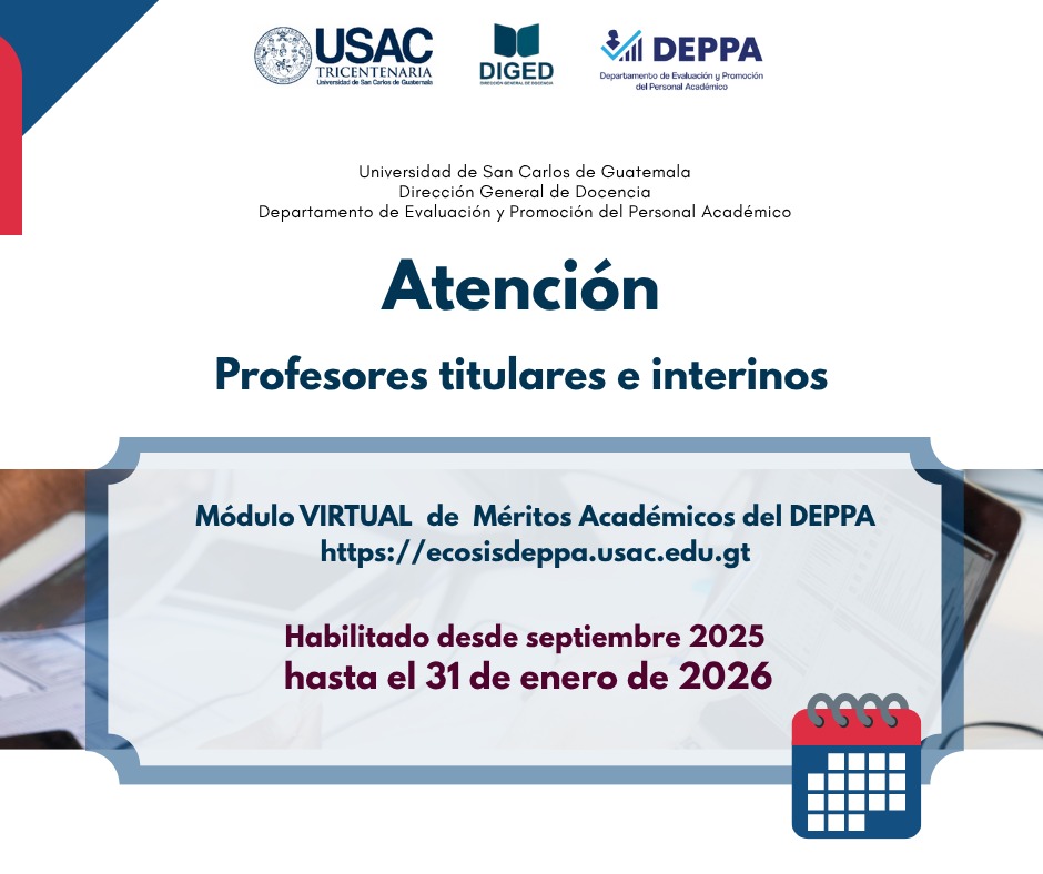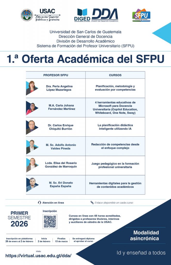 ✅ Invitan y organizan Universidad de San Carlos de Guatemala (USAC), Dirección General de Docencia (DIGED), División de Desarrollo Académico (DDA) y el Sistema de Formación del Profesor Universitario (SFPU).