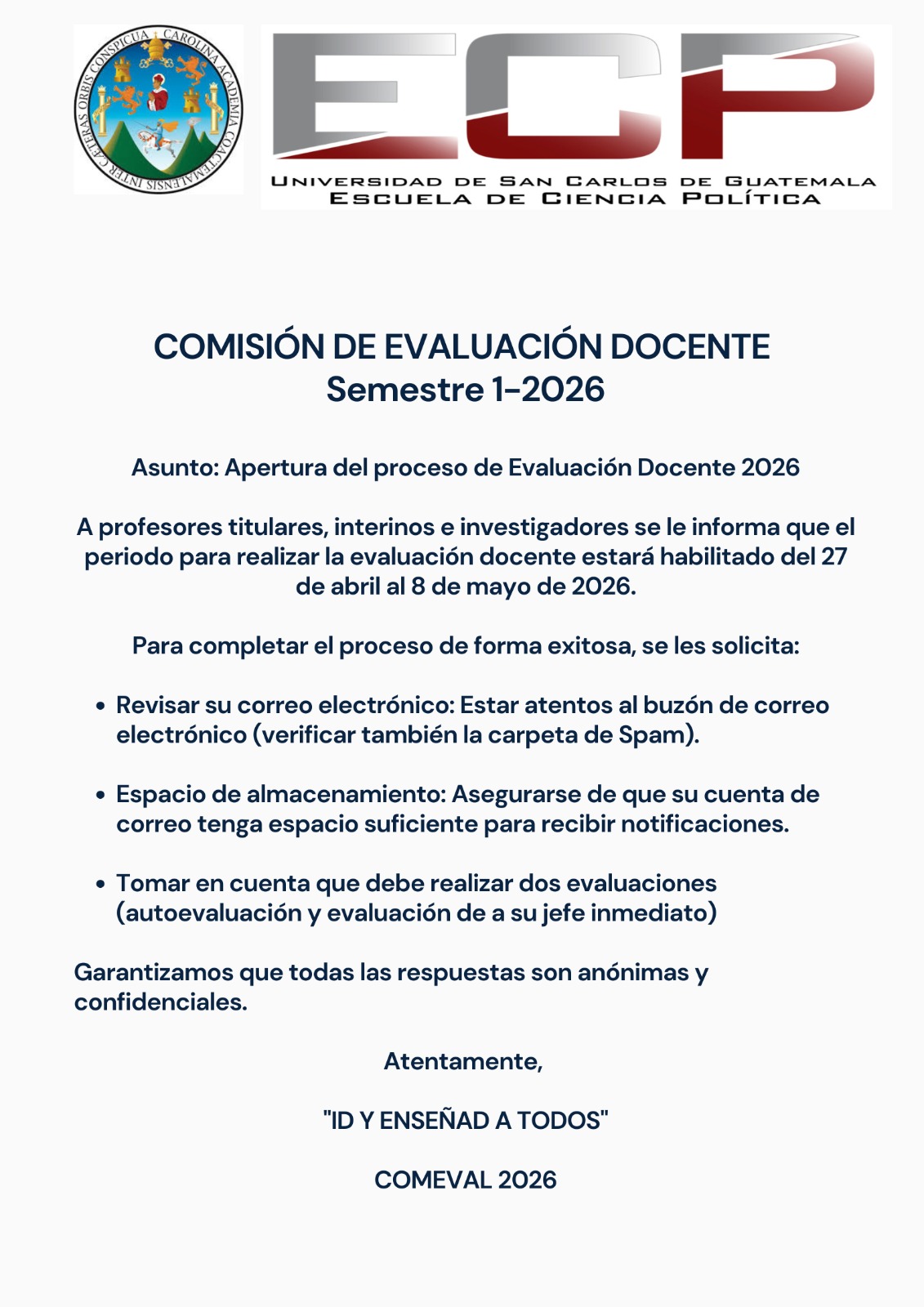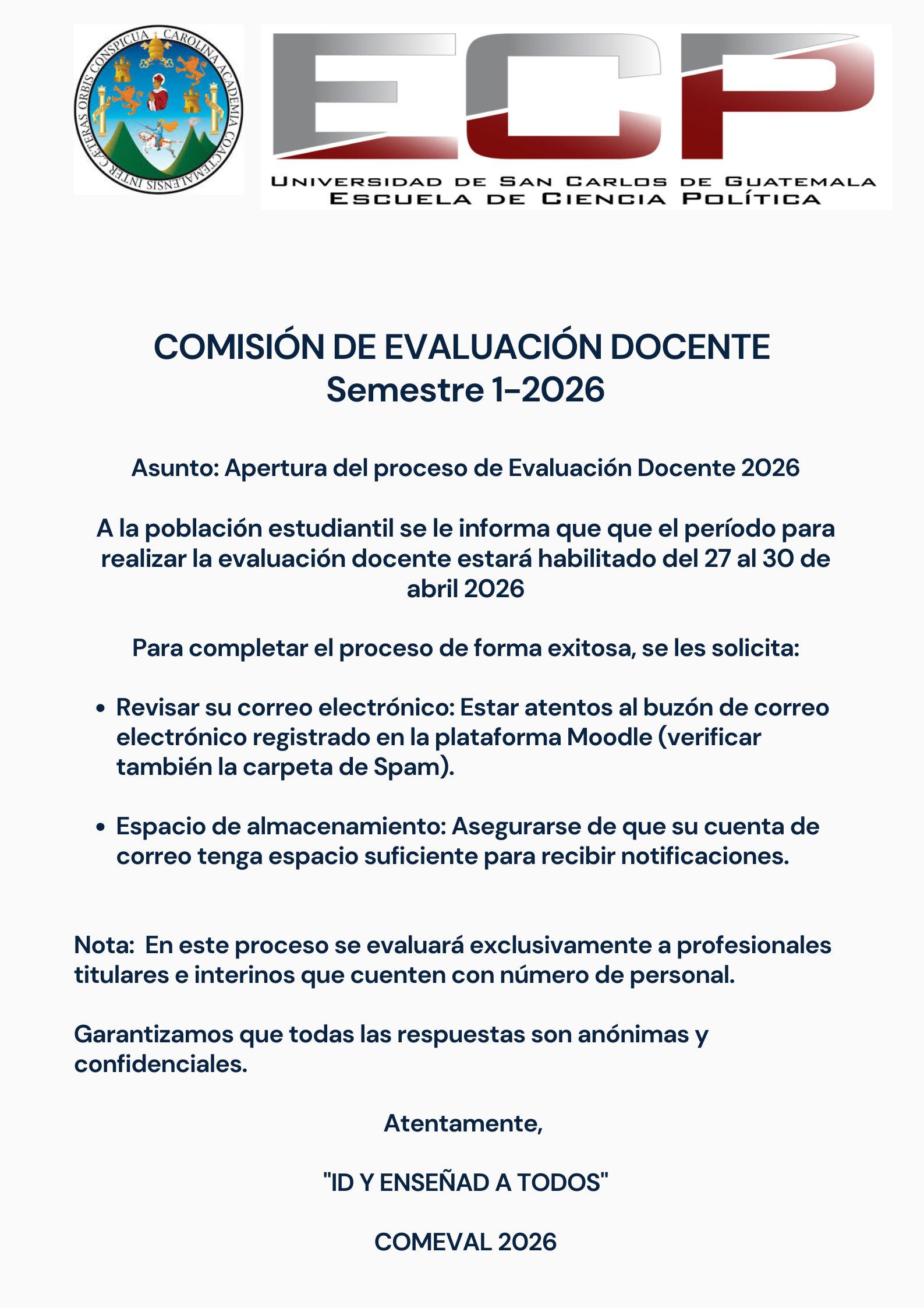 ✍🏽 Inscripción en la plataforma: del 26 de enero al 2 de febrero del 2026